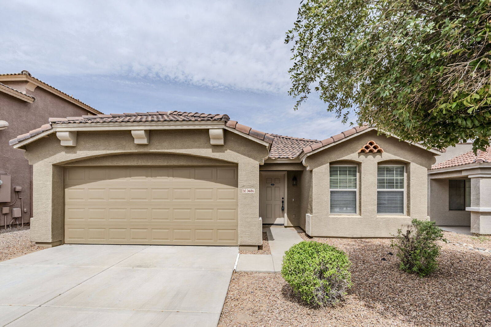 Glimpse a life of sunshine and serenity at 3686 W Goldmine Mountain Dr, nestled in the heart of the inviting San Tan Valley, AZ. This charming 4-bedroom, 2-bathroom oasis offers 1,777 square feet of beautifully designed living space, perfect for creating memories that will last a lifetime. Step inside to discover a spacious and airy layout, where natural light dances through every room, creating a warm and welcoming atmosphere. The open-concept living area is perfect for entertaining, allowing you to effortlessly transition from cozy family nights to lively gatherings with friends. Each bedroom promises restful comfort, providing a private retreat for every member of the household. The two full bathrooms offer modern amenities and a touch of luxury to your daily routine. Outside, the vibrant Arizona landscape awaits, inviting you to enjoy sun-filled days and starry desert nights. With its ideal location, this home provides the perfect balance of tranquility and accessibility to local conveniences. Experience the ultimate in comfort and style at this stunning San Tan Valley property, where every day feels like a retreat. No cats! Pet Need owner Approve! Tenants responsible for pay Admin fee $150.00 prior to move in. Renters insurance is required. No Access to community amenities at this time.